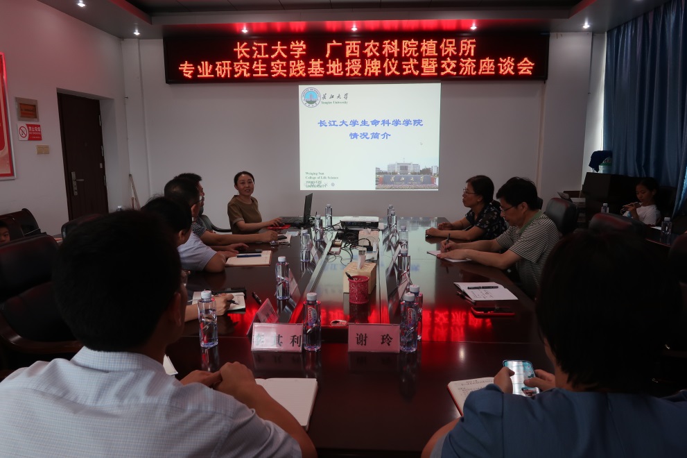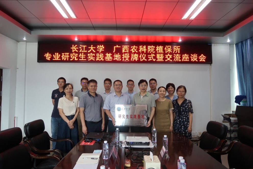 “专业硕士研究生实践基地”授牌仪式在广西农科院植保所举行,学院党委书记蔡哲斌、副院长孙卫青、生物系党支部书记系副主任孙文秀,广西农科院植保所所长于永浩、党委书记韦善富、副所长杨朗、邓铁军及专家、博士代表参加授牌仪式。仪式后双方就人才培养、科学研究等方面的合作深化拓展进行了交流座谈。