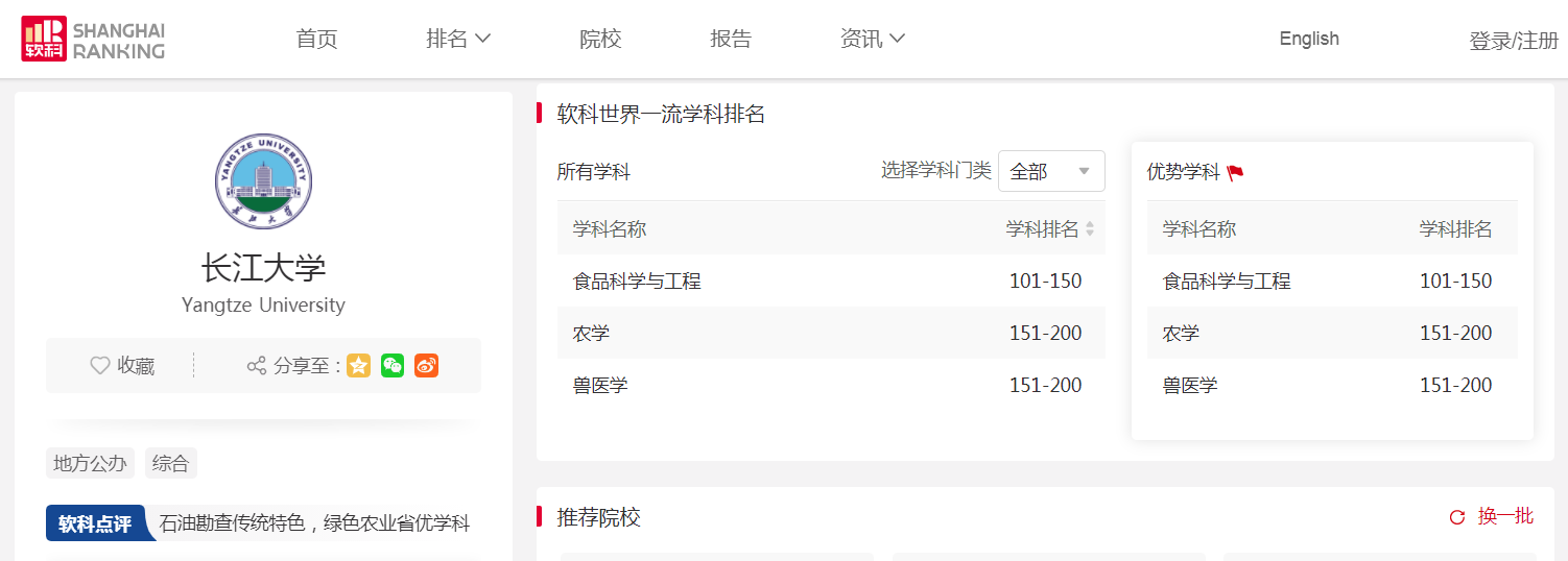 消息来源://www.shanghairanking.cn/institution/yangtze-university#gras