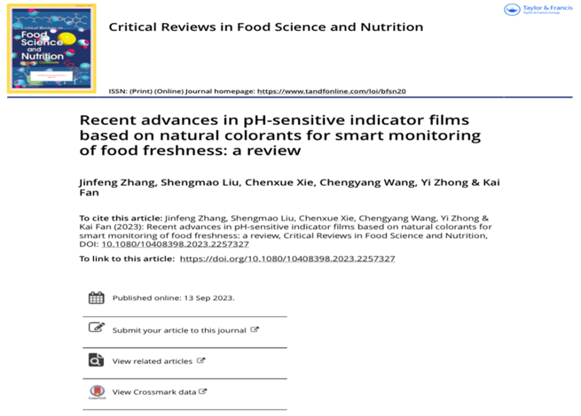 青年教师范凯博士悉心指导的本科生科研团队(张金风、刘盛茂、解辰雪、汪成阳、钟怡),在国际TOP期刊《Critical Reviews in Food Science and Nutrition》(中科院 1区,IF:10.2)上发表了一篇题为“Recent advances in pH-sensitive indicator films based on natural colorants for smart monitoring of food freshness: a review”的文章。该文章是在色情网
