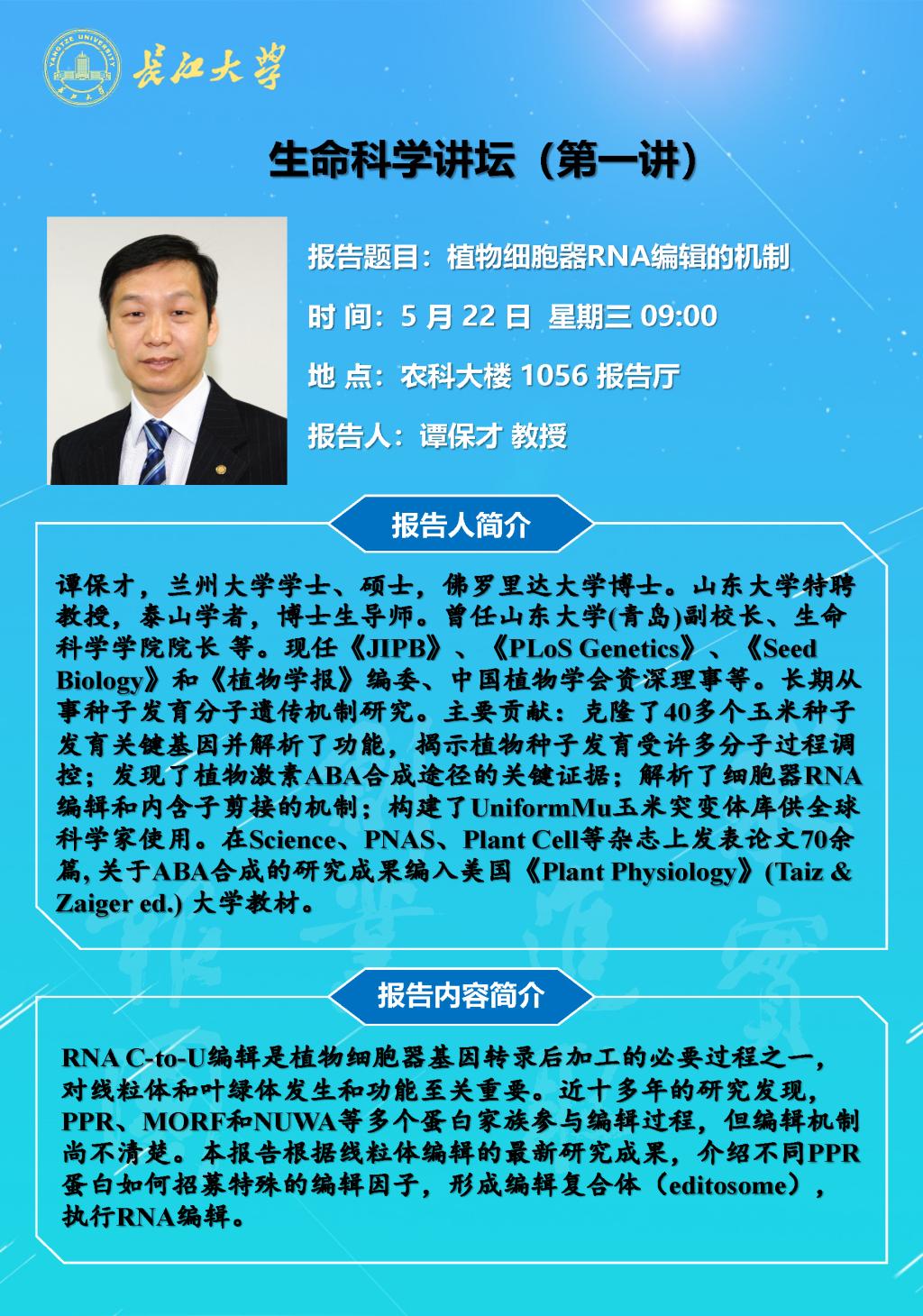 生命科学讲坛(第一讲):植物细胞器RNA编辑的机制